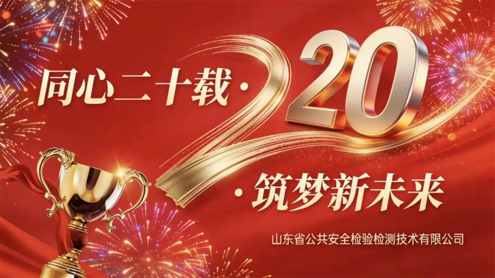 风雨兼程二十载,砥砺奋进铸华章。山东省公共安全检验检测技术有限公司成立二十周年!值此时刻,谨向全体员工、广大客户及长期支持公司发展的领导、同仁,致以最诚挚的感谢,对公司致以热烈的祝贺!